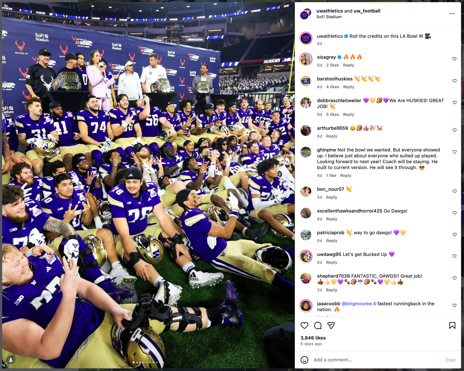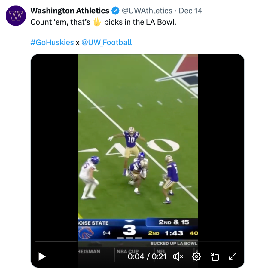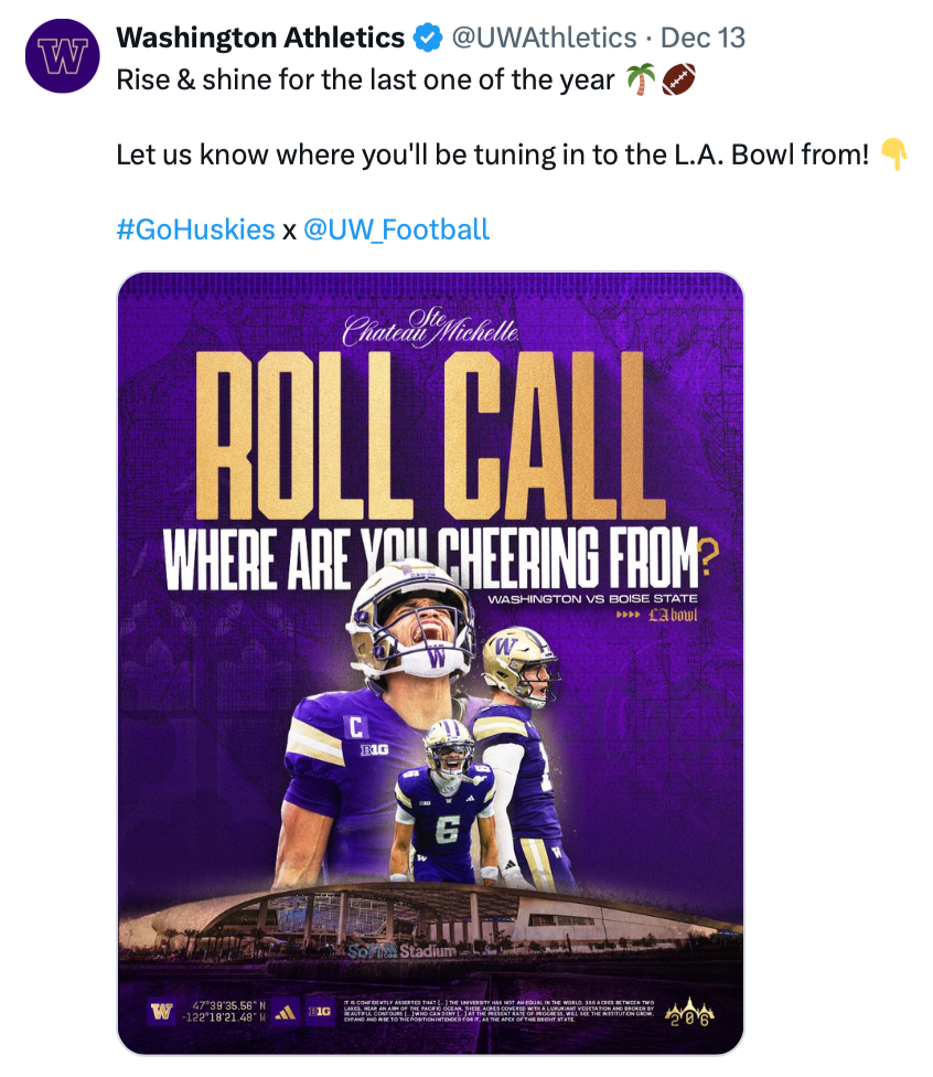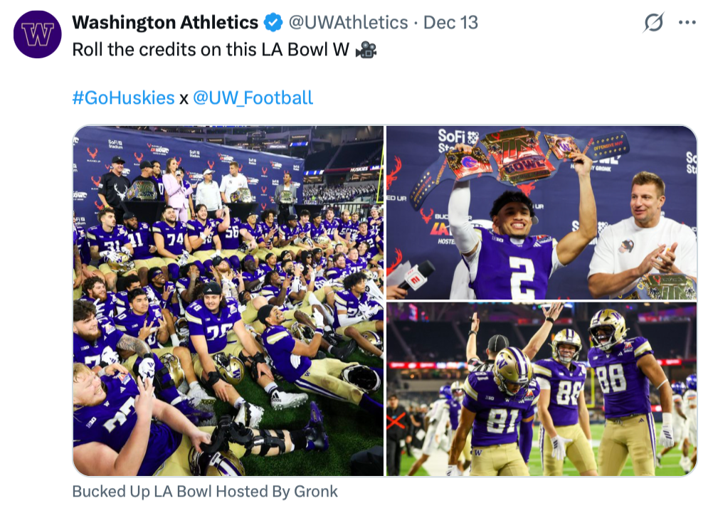 In 2025, during Washington’s first full year in the Big Ten Conference, @UWAthletics ranked second in the conference and top 10 nationally in engagement rate (4.01%) while producing 4,000+ organic posts. Since stepping into the role, I’ve helped reset UW Athletics’ digital strategy, driving a 769% increase in impressions within my first 90 days and generating 400M+ views/impressions and $9.27M in social value across athletics department channels.
