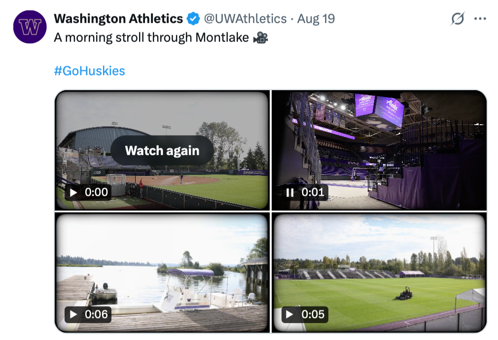 Vertical video is a cornerstone of event coverage, with Reels, TikTok, and Shorts capturing behind-the-scenes moments, highlights, and atmosphere in platform-native formats. This approach expands Husky Athletics’ reach and connects directly with younger audiences who consume sports primarily through short-form video.