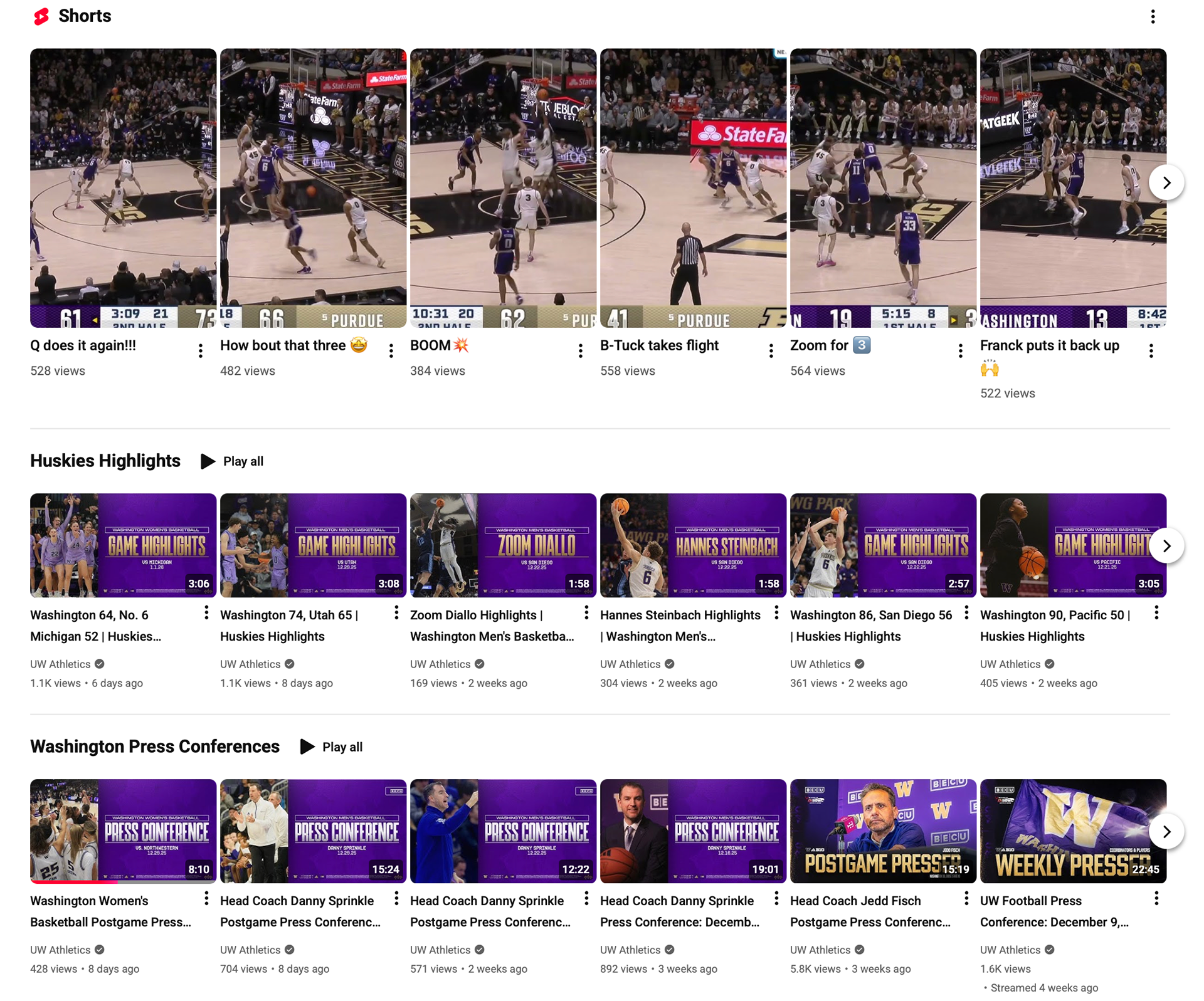 Led a comprehensive YouTube overhaul, optimizing SEO-driven descriptions, end card strategy, playlists, and consistent thumbnails while expanding individual and full-team highlights and press conferences across Shorts and long-form storytelling uploads.