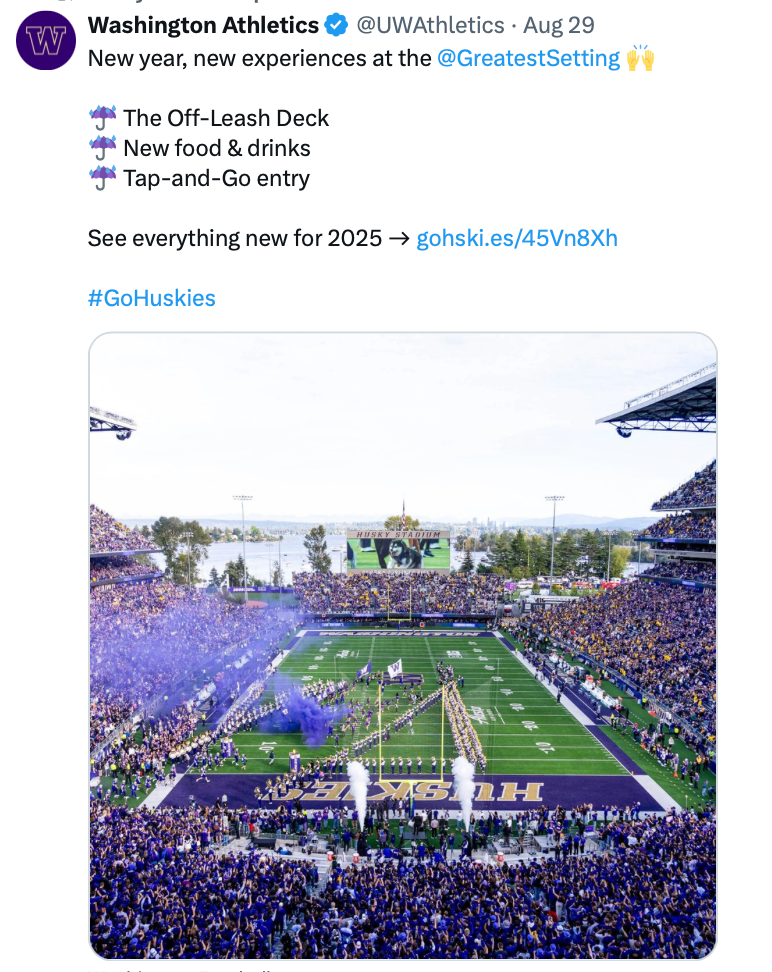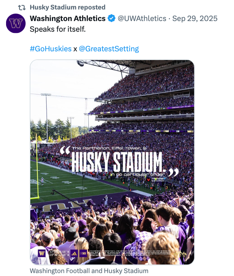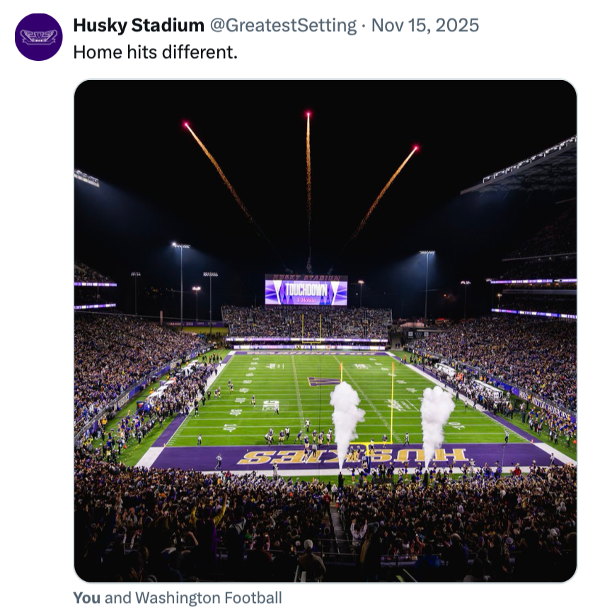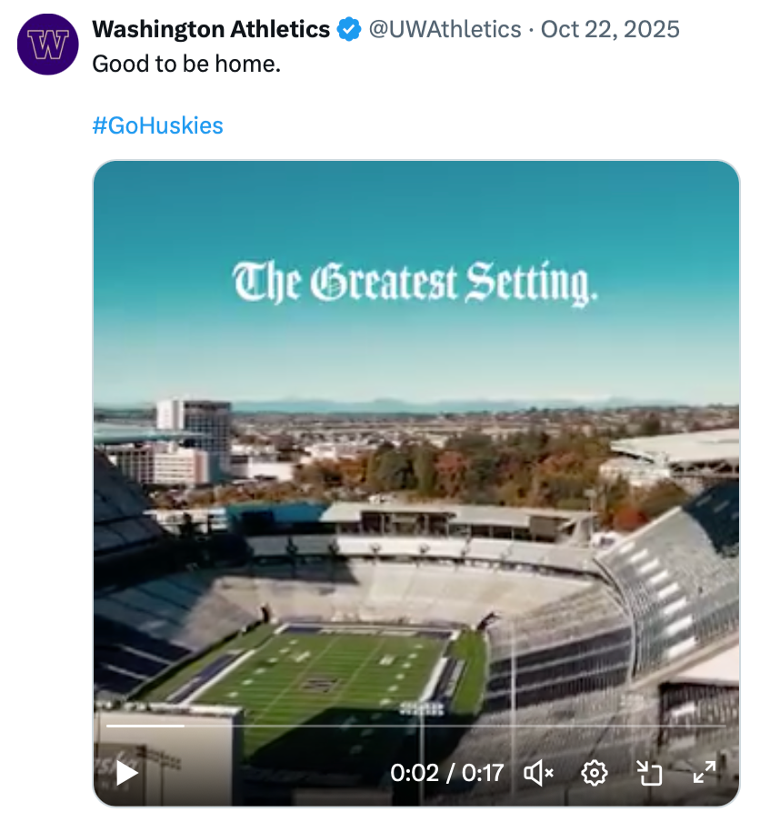 The Greatest Setting channels bring Alaska Airlines Field at Husky Stadium to life on digital. Branded after its reputation as the “Greatest Setting in College Football,” this platform serves as the primary showcase of the Alaska Airlines naming rights partnership. Beyond highlighting one of the sport’s most iconic venues, Greatest Setting functions as a key revenue driver for UW Athletics, blending fan engagement, partner integration, and game day storytelling into a uniquely branded digital experience.